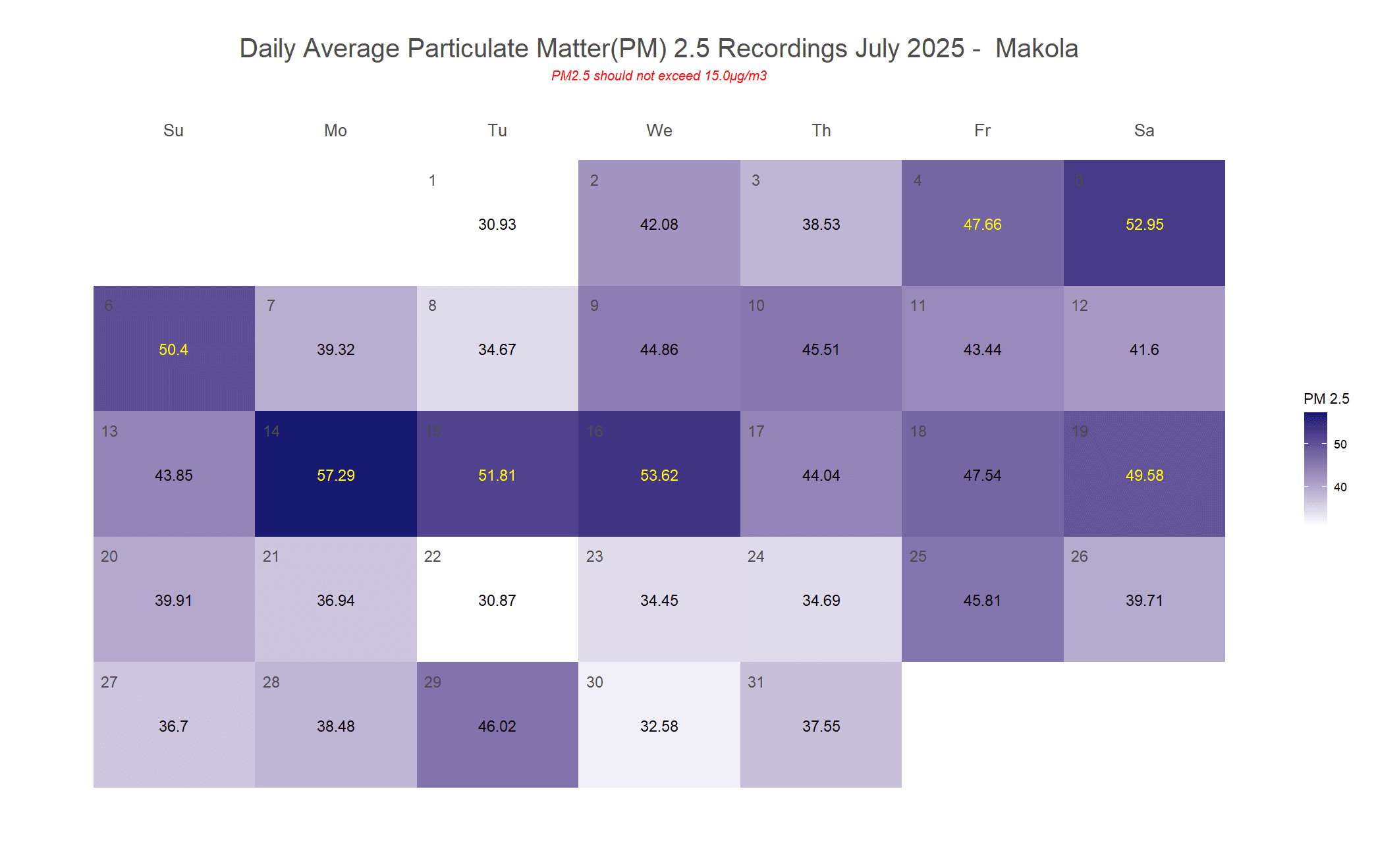 MONTHLY AVERAGE: 42 µg/m³