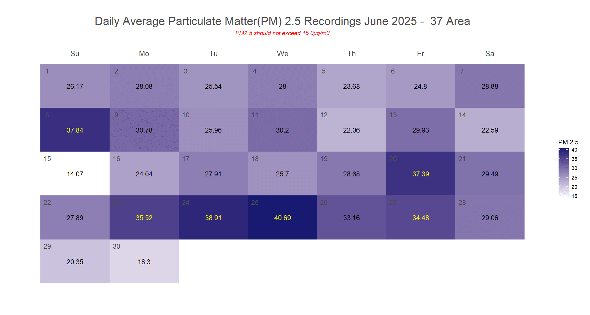 MONTHLY AVERAGE: 28 µg/m³